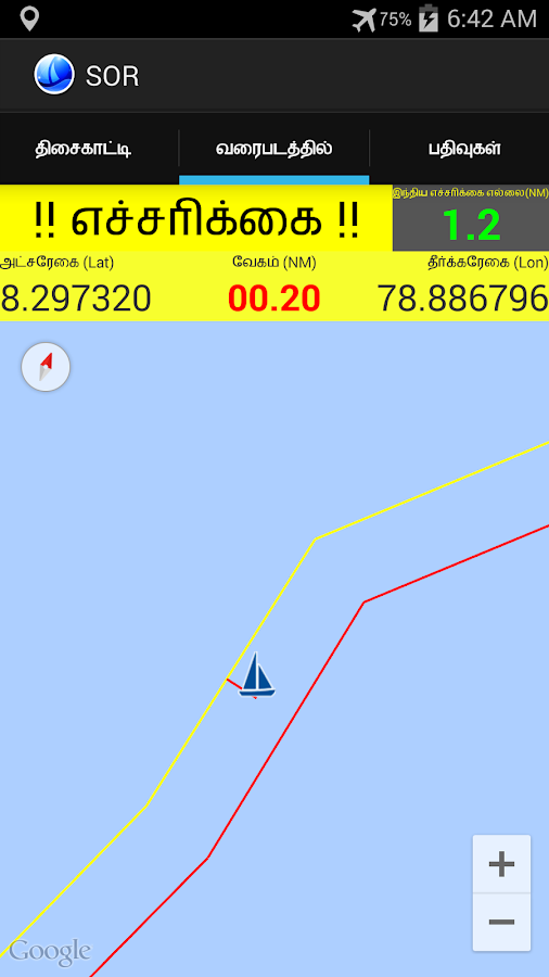 மீனவர்கள் கடலில் மீன் பிடிக்கும் போது இலங்கை கடல் எல்லைக்கு முன்பாக ஒன்றரை கிலோ மீட்டர் தூரத்தில் எச்சரிக்கை கோடு அமைக்கப் பட்டுள்ளது. இந்த இடத்தை மீனவர்களின் படகு அடையும் போது, அவர்கள் வைத்திருக்கும் ஆண்ட்ரைடு மொபைலில் மஞ்சள் வண்ணத்தில் எச்சரிக்கை அறிவிப்பும், எச்சரிக்கை ஒலியும் எழுப்பும். இதனால் மீனவர் விழிப்படைந்து படகை திருப்பிவிடலாம். அதை அவர் அலட்சியப் படுத்தி மேலும் நகர்ந்து கடலில் எல்லைக் கோட்டை தாண்டி இலங்கை கடல் எல்லைக்குள் நுழையும் போது, சிவப்பு வண்ணத்தில் "வெளியே' என எச்சரிக்கையுடன் கூடிய ஒலியினை எழுப்பும்.